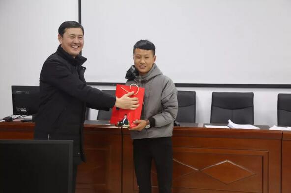 海晏經信局羅布加局長為獲“一等獎”的優秀培訓學員頒獎